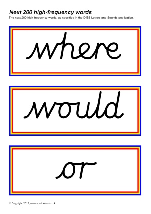 Phase 3 High Frequency Word Cards Cursive